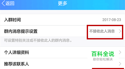 屏蔽此人: 如图。首先,将屏蔽此人后面的选项,选定,如下图。之后,点击群内消息提示设置,进入隐藏菜单。