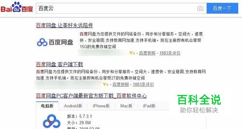 首先我们打开百度搜素,输入百度云关键字并查看搜索结果。