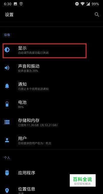 第二步进去一加系统设置之后,点击显示,如下图所示: