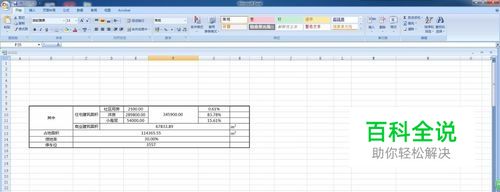 打开已经制作好的excel表格。以某住宅区规划的建筑面积指标为例。如果要统计社区用房、洋房、小高层在总的建筑面积中所占的比例,一般都要先计算出总的建筑面积,然后才可以算出百分比。