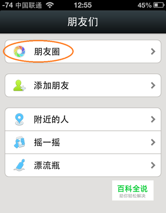 然后,选择底部的“ 朋友们”,点击上方的“ 朋友圈”,如图所示