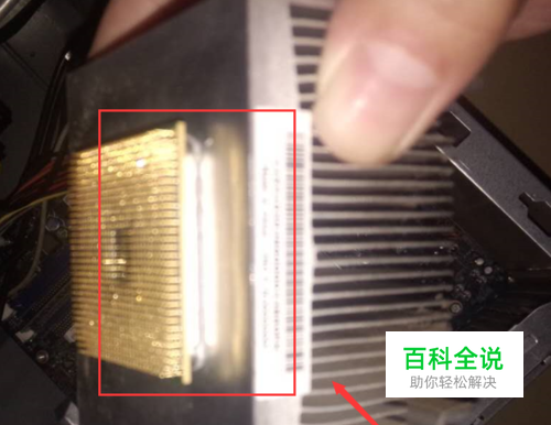 第四步:轻轻将cpu风扇,以及散热片,轻轻晃动,拿下来,注意,一定要当心cpu,不要暴力拆机,如果,一不小心,就会成为下图这种情况