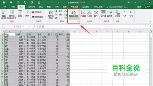第一,我们来举个例子,做个简单的实际操作,可能会更好一些,所以选择数据区域,然后新建数据透视图(版本不一样,可能一个插入的位置也不一样)。