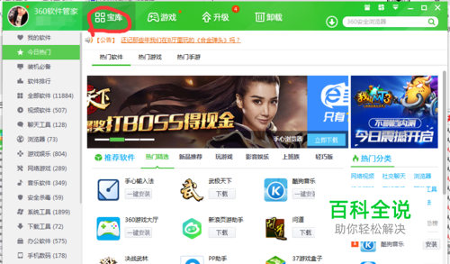 进入”软件管家“后,点击左上角的”软件宝库“选项。