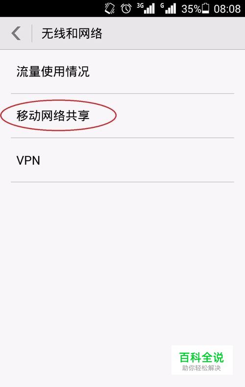 在无线和网络的设置页面里点击【 移动网络共享】