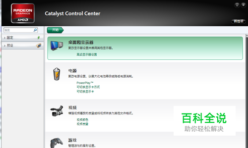 桌面和显示器:Catalyst Control Center控制台的桌面和显示器一项可以调节检测新的外接显示器的选项。 我们可以选择打开Catalyst Control Center控制台时自动检测,或者选择手动点击 检测 时进行检测