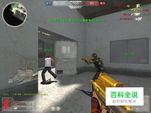 移动射击;这里的移动射击是指在中远距离处,一边移动,一边点射对方。移动射击是射击的进阶方法,也是一门必修课,当你对你的枪支比较熟悉,鼠标也感觉不再那么晃动,那么你就需要认真学学在移动中应该如何射击。 首先说说点射,为什么要点射呢?你可以做个实验,当你处于静止的状态之下,拿枪不停的射击远处的目标时,你会发现可能只有前三发子弹在你想要射击的目标范围之内,后面的子弹你就完全无法控制了,而有间歇的进行射击,则会大大提高命中率。 点射的精华就在于那个“点”字,说明白些就是点击鼠标的频率,当你开、枪之后,准星会因为后座力的关系开始变大,这个时候如果鼠标点击太快,会严重影响下一枪的命中率,而点击太慢,又会给对手留下太多的机会。 在两者之间选择一个平衡点,这个就是“点”字的精华!我习惯使用AUG,点射的时候采用的是两连发(AUG这把枪精确度高,但威力较小,三连发即使都打中对方,只要不是要害,也无法致命,采用两连发击打头部,我认为效果要好一点),点射间隔时间大概在0.4秒左右,在游戏过程中感觉还不错,其余的枪支我使用的不多,不敢逛言,但我想在这里插一句,绝对不要频繁更替自己手中的枪支,熟练的使用两三把枪就足够了,用手指记住一把枪的点射频率并不容易,并且枪感不是随时都能有的! 接着我想说的是为什么要学会在移动中射击,可能很多人认为只是为了让对方不容易击中自己,我认为这个答案并不准确,移动射击的目的是在闪避中寻找攻击对方的机会。前面已经提到过点射的间隔时间,移动可以充分利用这段时间等待准星的回复,调整自己的状态和鼠标,从而再次发起进攻。那么究竟应该怎样做?怎么样才能更快更准确的击中对方呢? 我认为大家首先得明白一个问题,在无障碍远距离移动对射的情况,什么客观因素会影响自己的命中率?我个人分析有以下两点:一是不停的移动,二是胸部以上被击中。对于前一因素,大家可以自己在游戏中观察,当你不停跑动的时候,准星是不是放得很大,这个时候开、枪,子弹会偏离目标。 明白了这一点,大家就要切忌在高速移动过程中向远处的目标射击,正确的做法应该是:在点击鼠标的那一瞬间,减速,暂时停顿(不是停止)或者向反方向移动。 具体流程是:移动——停顿(或反方向移动)——射击——移动——调整准星,等待后座力消失——停顿(反方向移动)——射击。经过反复练习之后,就能一气呵成,既让人觉得自己在不停移动,又能准确击中对方;对于后一因素,我感觉对狙击手的效果最为明显,受重创时瞄准镜头有明显晃动,所以为了让对手更难击中自己,第一枪的命中就显得极其重要,即使第一枪未能击中要害部位,击中其他部位也能使对方行动减速,从而为下一枪创造条件。 移动射击需要大量练习和反复总结,一开始你可能会觉得非常别扭,但持之以恒之后,你会发现在CS当中做个高手也并不是什么困难的事。