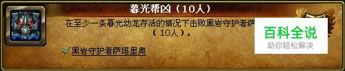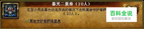 这3个成就放在一起,因为这3个成就是逐渐升级的。当你直接完成暮光领域时你可以同时获得暮光二重奏和暮光帮凶成就。而完成前2个成就,击杀幼龙可以从维斯匹隆,沙德隆和塔尼布隆自由选择你要留下来的龙,而不是指定留下某条幼龙。