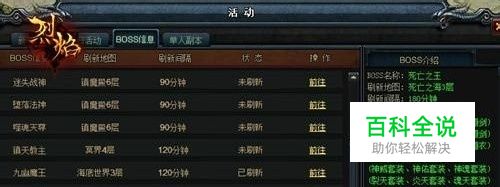 千万年来,死亡之王企图吞没烈焰大陆,时常率领邪恶而强大的海底九幽大军进行强行入侵。为了不让死亡之王的阴谋得逞,《烈焰》勇士们在三英雄的带领下,奋勇抗击,将敌军首领死亡之王囚禁于海底深处,并用古封印大阵法牢牢封印。随着岁月的流逝,封印的力量逐渐消减,死亡之王破除封印,恐怖氛围再次笼罩整个烈焰大陆。试问谁能降服恶魔,还世界一片安宁? 自从《烈焰》最高副本死亡之海隆重开放后,各路英雄豪杰缓缓前来围剿,期待能一睹死亡之王的庐山真面目。然而,并不是所有泛泛之辈都能领略“死神”的风采。兽皇石窟的等级要求是飞升等级达到4级,如今最强副本死亡之海的等级要求更为苛刻,需要飞升等级达到5级,才有资格通过传送员踏进死亡之海的领域,感受死神召唤的恐惧。资历不够的玩家对死亡之王只能是求之不得,辗转反侧,以加强修炼来鞭挞自己了。 作为全新最高的副本,《烈焰》死亡之海共有三层,其统领者死亡之王深居于第三层。有资格踏进死亡之海的勇士们,还得一路斩妖除魔,将前两层的守卫兵全部清理掉后,才能进入最底层。而这些守卫并不是普通的虾兵蟹将,战力可是与荒蛮兽皇不相上下哦。很多慕名前来挑战的勇士,都因不堪忍受这些所谓的“小喽喽兵”的痛击而丧魂于此。还未有机会靠近死亡之王,就落得个狼狈而逃,回城再复活的下场。
