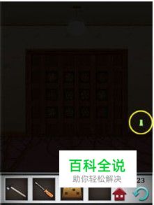 第二十三关,屏幕漆黑一片,不知道电梯门在哪里,但是有一个绿色的亮点,想必是电灯的开关吧,点击以后果然房间亮了起来。