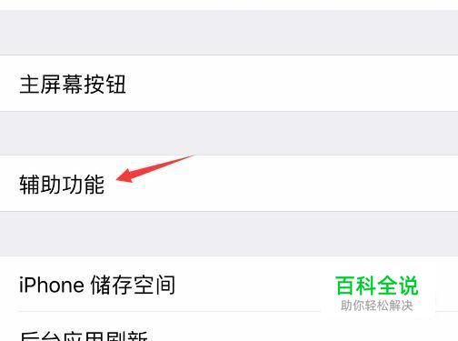 点击辅助功能。iPhone的这个小圆点其实是辅助功能中的一个,接着找到辅助功能,然后点击进入这个页面即可。