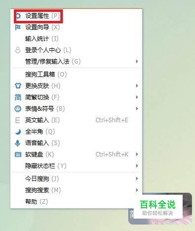 在搜狗输入法界面,点击右键,选择设置属性,如图所示