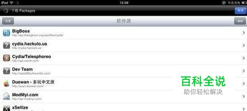 2.打开这个软件--Cydia,从下方的菜单栏中选择“软件源”,点击右上角“编辑”按钮。