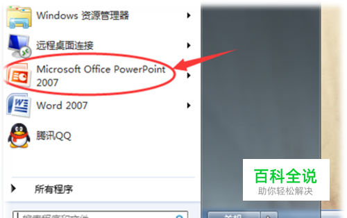 首先进入开始菜单,打开2007版本的PPT。