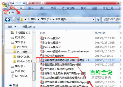 点击Office按钮,打开需要加密的演示文稿。