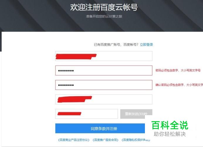 点击同意条款并注册,之后页面跳转,输入你刚才所注册的账号密码就成了。