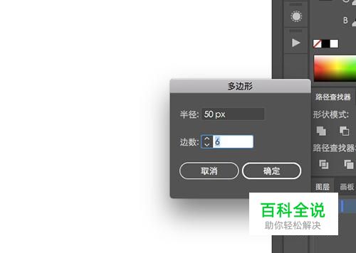 选择多边形工具之后按回车键进行设置面板,将边数调整为“6”,半径随意,点击“确定”