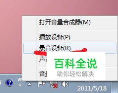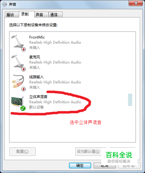 在电脑右下角的“喇叭图标”上右击,选择“录音设备”将“立体声”混音设为默认设备