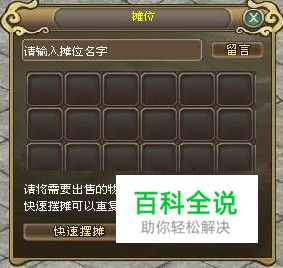 第二步: 输入摊位名称 打开摆摊界面后,您需要输入摊位的名称,对于摊位的名称可要想好啊!好的摊位名称可以获得更多玩家的关注,物品也可以卖得更快。