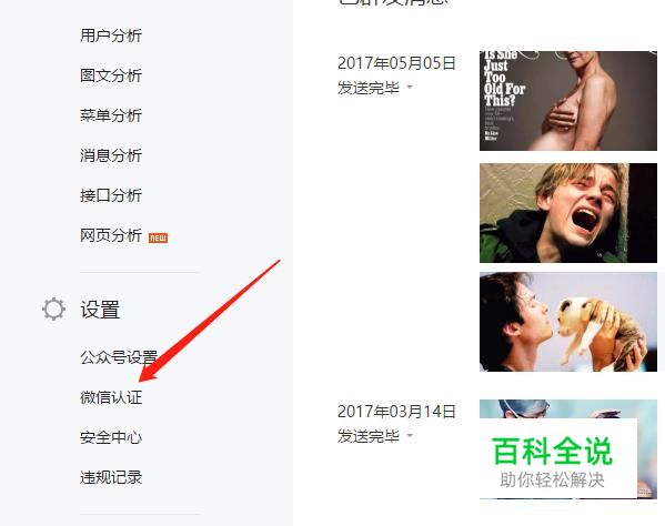 首先我们登录微信公众号后在后台页面下,我们向下拉会看到左边菜单栏目有“微信认证”的栏目,我们点击进入。