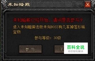 进入方式一:在未知暗殿活动开始的时候,系统会自动出现参与提示面板。 点击【参与】按钮即可进入未知暗殿进入方式二:在未知暗殿活动期间,点击在线活动按钮点击未知暗殿自动传送进入迷宫地图。 进入地图后会发现很多平常强大无匹的怪物变得弱小无比但是平常弱小无比的怪物变的异常强大未知暗殿规则:1.活动一共持续30分钟2.每清理完一波怪物就会刷新出下一波怪物3.在野外越强大的怪物在这里就越弱小,在野外越弱小的怪物在这里就是神的存在4.有一定几率真BOSS夹杂在怪物群中让你无法辨认5.爆率与实力挂钩,越强的怪物爆率越高6.在下一个版本中,会在未知暗殿投放神秘套装装备,新奇的玩法敬请期待。地图是一个正方形环绕区域 小贴士:这张地图是可以PK的,推介组队前往,以免被他人清场导致失去击杀野鸡的最佳机会