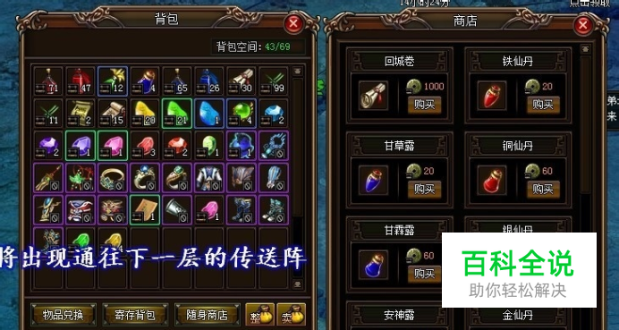 9377魅影传说随身商品,只要在背包中打开即可,无需回城找NPC药店老板,直接购买便可获得商店中的道具。随身商店方便快捷,不用浪费玩家回城的时间, 快速获得商店道具。那么魅影传说随身商店可以购买哪些道具呢?魅影传说随身商店入口在背包系统中,点击游戏界面下方的背包按钮或者使用快捷键“B”可以打开个人背包,之后点击“随身商店”即可进入随身商店购买界面。随身商店是购买药水的主要途径,回血回蓝的主要道具。 在随身商店中可购买的回血药有铁仙丹、铜仙丹、银仙丹、金仙丹、小还丹、中还丹、大还丹、仙宿丹、还神丹,使用等级分别是1级、30级、60级、80级、100级、2转、4转、6转、8转,价格分别是20、60、100、140、180、220、260、300、340铜钱。 回蓝药(即回复魔法)有甘草露、甘霖露、安神露、定心露、灵玉露、神草露、仙草露、圣草露,使用等级与回血药一样,价格分别是20、60、100、140、180、220、260、300铜钱。 魅影传说随身商店还有回城卷可购买,1个1000铜钱,使用后可立即回到本国王城,在魅影传说太庙搬砖、刺探、厉兵秣马、野外杀怪时,若被其他高手玩家攻击,自己战力又太低的情况下可使用,可避免被击晕。