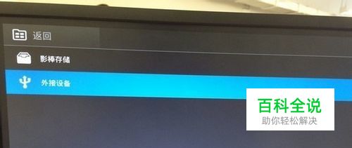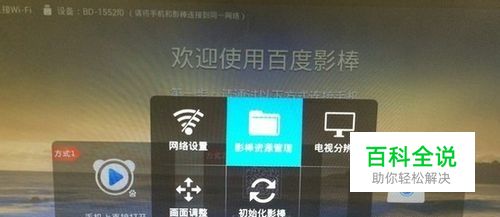 2、将U盘插到百度影棒上,打开百度影棒,按菜单键调出设置界面,选择“影棒资源管理”——“外接设备”。