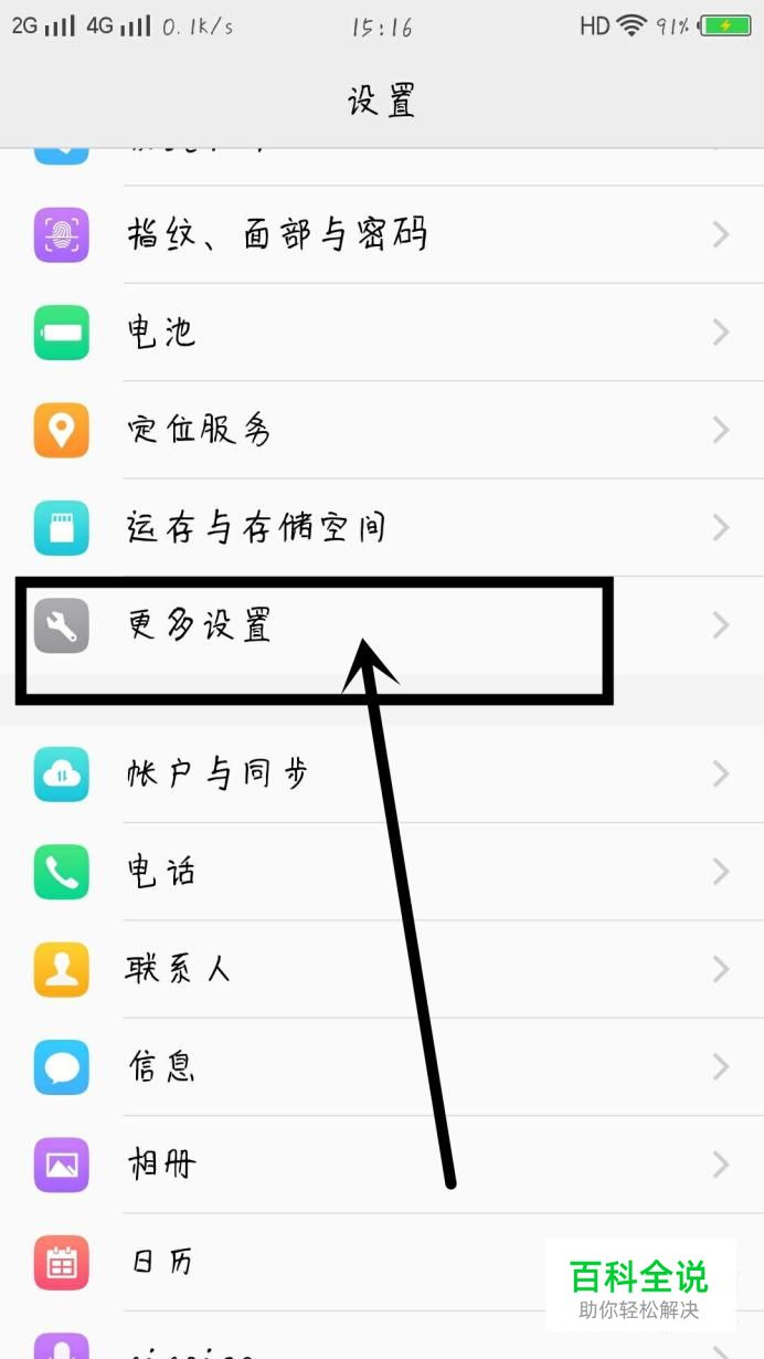 在该页面向下滑动,找到“更多设置”点击并进入,如图所示。
