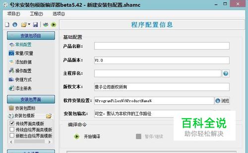 配置安装包的界面(目前兮米安装包制作工具提供了三套模版,这里仅演示使用传统界面模版)