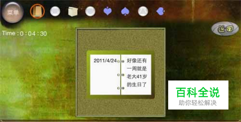 10、双击物品栏中的笔记本,打开,先是写了一些信息,再点一下,得到一个向右的黑桃;