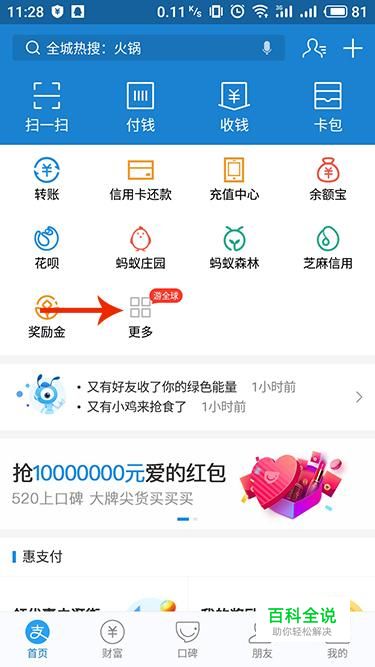 进入支付宝APP界面,在上方选项中点击“更多”进入全部应用界面。