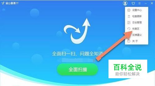 金山毒霸的主界面,点击右上角 三横 按钮,会出现下拉菜单,点击其中的 恢复区 按钮,打开金山毒霸恢复区,在这里面都是已经被金山毒霸隔离的文件,如果想要解除隔离,就在这里操作相应的文件。