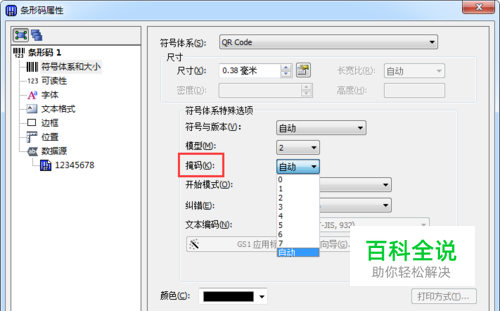 BarTender掩码功能特殊选项支持的符号体系包括DotCode、GS1 QR Code、iQR Code、Micro QR Code和QR Code。 虽然不同符号体系有不同多的掩码方案,但是小编还是强烈建议您使用默认设置“自动”。使用这种设置,BarTender 就可以:(1) 比较所有八种掩码方案将对条形码产生什么影响;(2) 使用可读性最好的掩码,而评估可读性的标准则由条形码的官方规格指定。