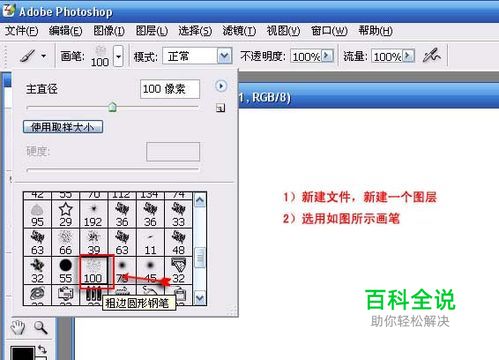 2、选择画笔工具,在笔刷的下拉菜单选择下图所示的笔刷。