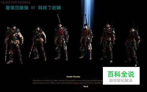 进入游戏前首先要选择角色的职业和性别。DA2中有3种职业:法师,战士和盗贼。战士拿着双手巨剑非常帅。