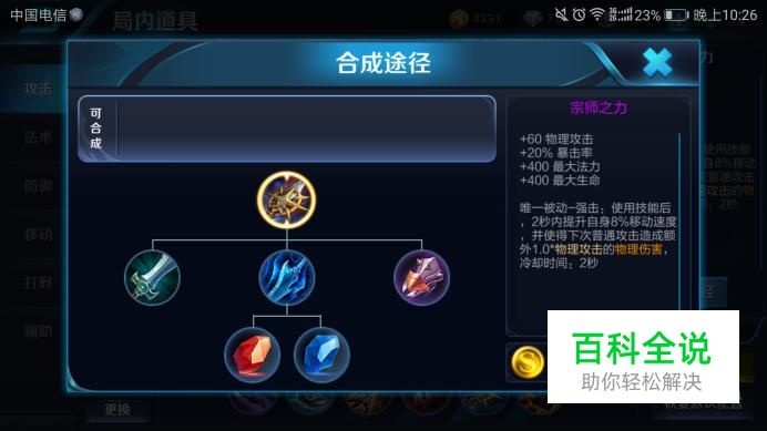 宗师之力;物理攻击+60,暴击率+20%,最大法力+400,最大生命+400,被动技能:强击,使用技能以后2秒提升自身8%移动速度,使下一次普通攻击造成1.0*物理攻击的物理伤害。