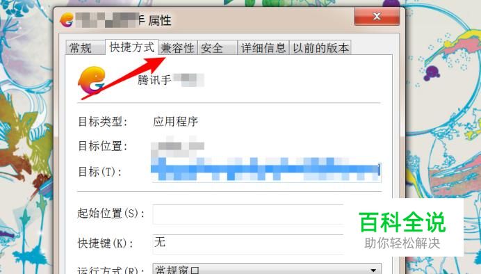 打开属性窗口后,点击上方的‘兼容性’
