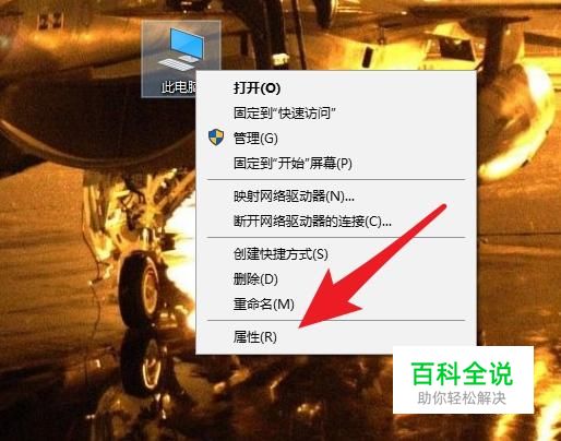 进入系统桌面后点击桌面上的此电脑图标,选择属性。