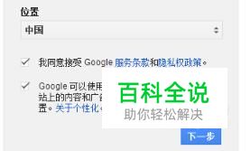 勾选弹出的“我同意google的服务条款和隐私政策”选项,并选择“下一步”选项,就会出现一个注册成功的界面。