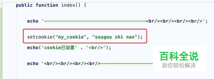 在创建cookie时,我们可以为这个cookie设置过期时间,cookie过期了,我们就读取不到这个cookie的值了。 要设置过期时间,我们只需要在 setcookie函数里设置第三个参数就行了,代码如图, setcookie("my_cookie", "sougou zhi nan 2", time() + 10); //把cookie设置成10秒后过期。