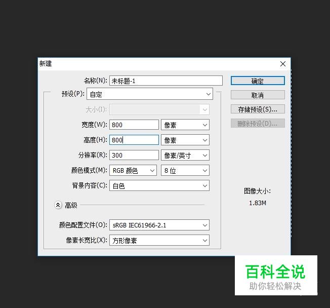 新建一块画布,画布的大小设置为800*800,背景色设置为白色。