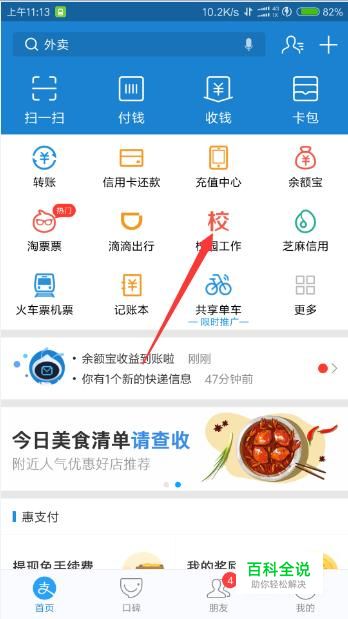 进入支付宝主界面后点击校园工作。