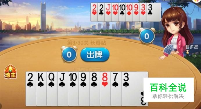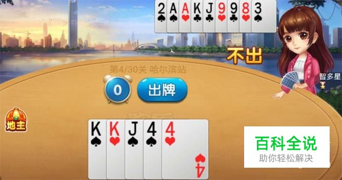 对手出了对9,地主就出对K,报单个J,对手有二张小牌3和8,所以地主能胜出。 在后面的残局里也是一样,我们多试几种出牌顺序,就能找到胜出的方法了。大家可以接着后面的关卡去试验下。
