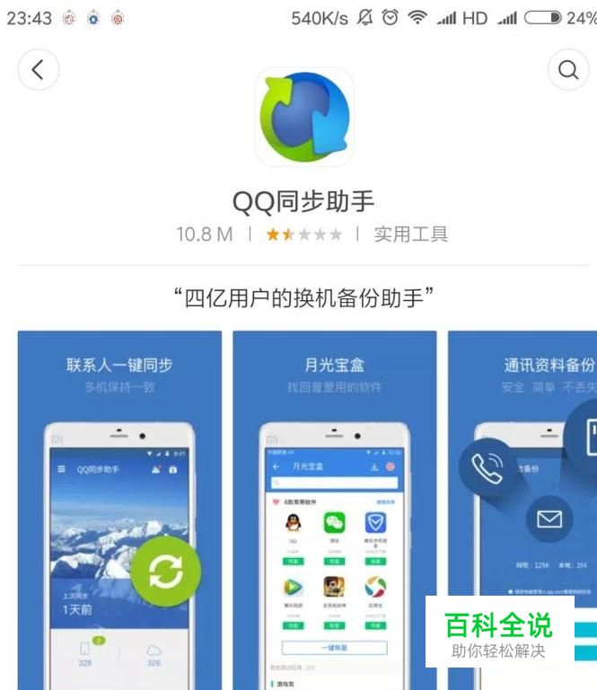 在应用商店下载QQ同步助手,也可下载其他类似软件,尽量选择下载量高的,用法类似。
