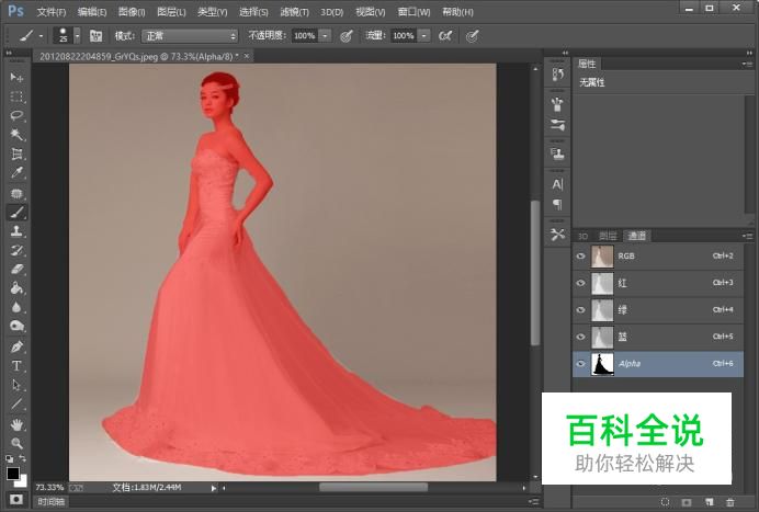 打开婚纱素材图片,并使用快速蒙版工具抠选出人物选区。