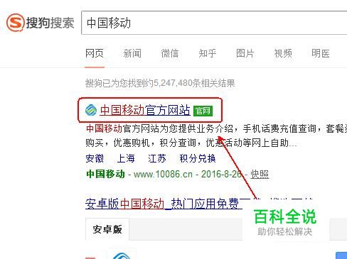 在搜狗搜索引擎中输入关键词“中国移动”。