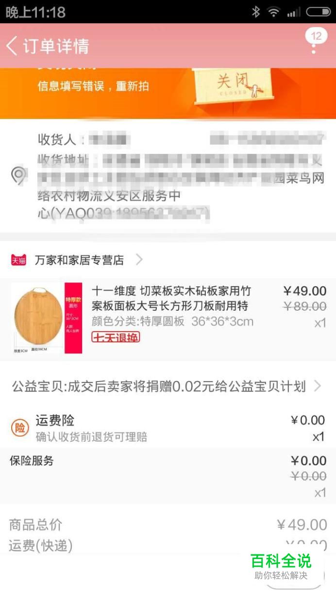 从关闭的订单中可以看到送货具体地址不再是家里,而是代收货地址。