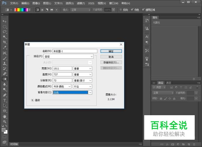 新建一块画布,画布的背景色设置为白色,其他参数使用默认值。