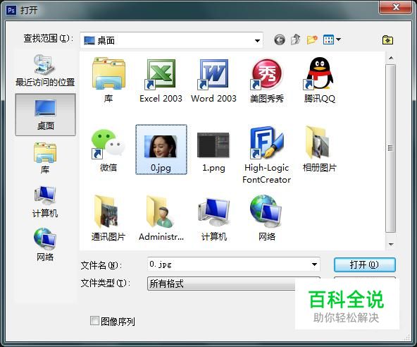 在该界面内按下快捷键Ctrl+O键弹出打开图片对话框,在该对话框内找到我们的图片素材,如图所示: