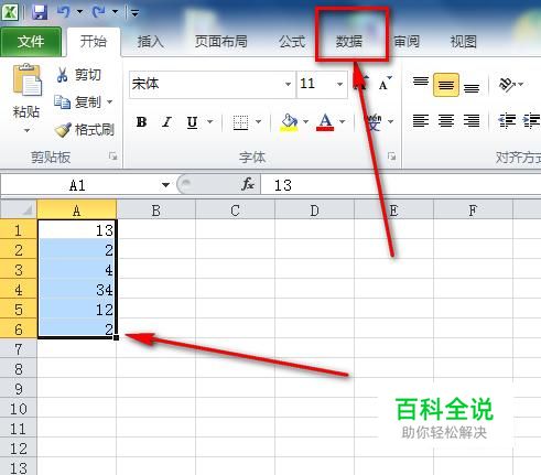 接着我们选中要进行顺序排列的数据,然后点击“数据”菜单便可以了。